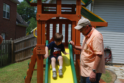 The grandparent's went in with us to get Garrett a play set for his birthday. So the weekend before his birthday we had their assistance to put it together.